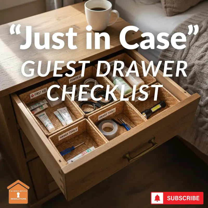 Grab your copy of “The 7-Day Vacation Rental-Jumpstart” downloadhttps://vacationrentalresolutions.com/The-7-Day-Vacation-Rental-Jumpstart.pdf The Emergency Drawer Th...